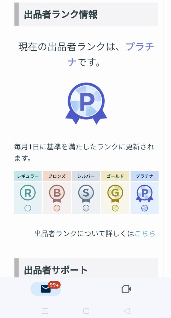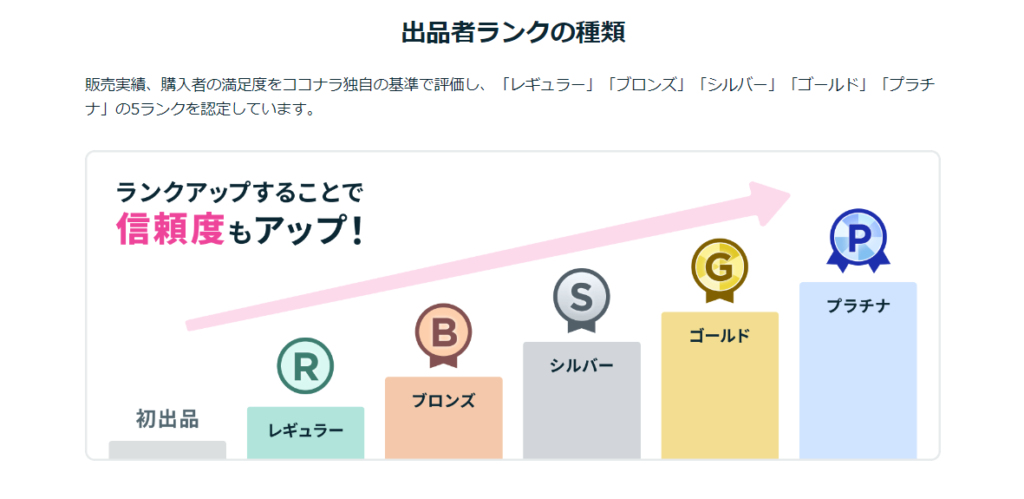出品者にはランク制度があり、「プラチナランク」になると検索上位に表示されたり、信頼度が一気に高まります。